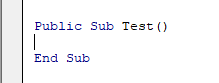 Once you have selected your module, the easiest way to create a procedure is by typing directly into the Module Window. If you type the word Sub followed by the name of the procedure, the End Sub will be automatically added to the code for you.